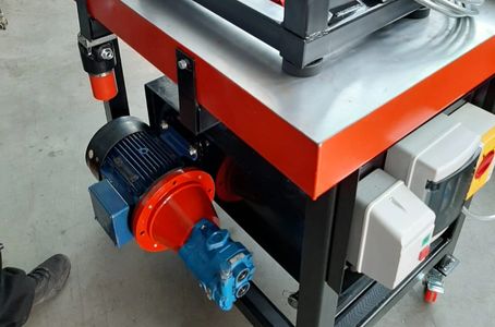 The frame has been designed to allow the oil tank to slide in and out between rails. This allows the tank itself to become mobile and feed oil to separate units if required.